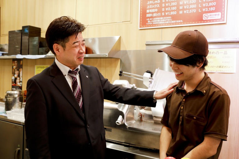 - 私はもともと、パチンコ店オメガで店長を務めていました。その経験を踏まえて想うことは、接客するスタッフの考え方は、基本的に同じだということ。違うとすれば、接客の深さはあるかもしれません。あくまで私の体感ですが、お客様とのコミュニケーション量はパチンコ店のほうが多く、「人にものを伝える力」はより身につくのではないかと思います。だから当社のスタッフがこれまで磨いてきた接客力は、飲食事業においても大きな武器になるはずです。